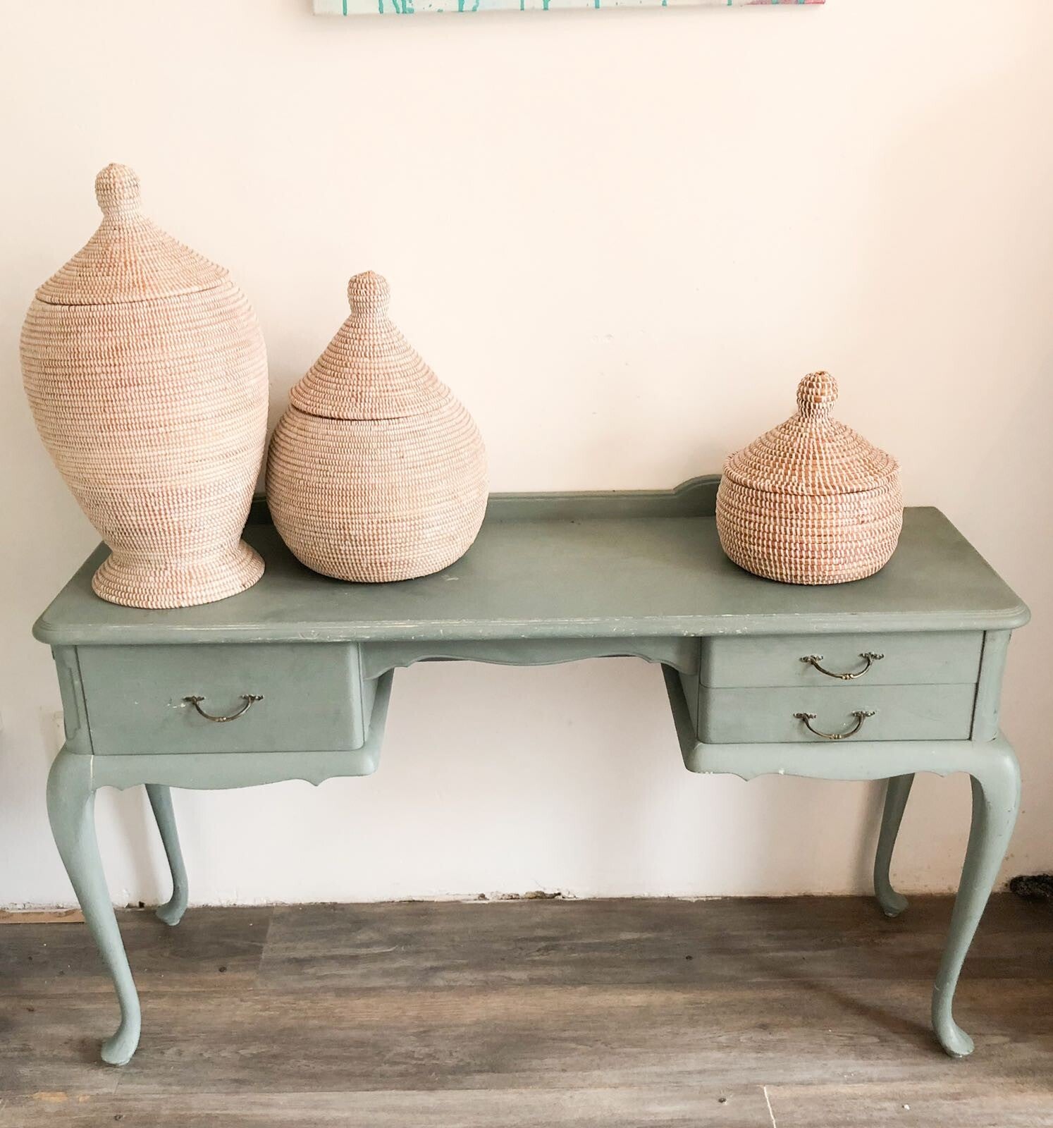 “Jaren geleden produceerde ik manden voor het Return to Sender-programma van de HEMA. Ze werden gevlochten een zusje van deze medicijn plant die ik nu, jaren later, als heilig medicijn in mijn shop aanbied. Toen bracht ik haar kracht de wereld in als drager van spullen, nu als drager van heling. Soms begrijp je pas achteraf hoe diep je roots je roepen.”