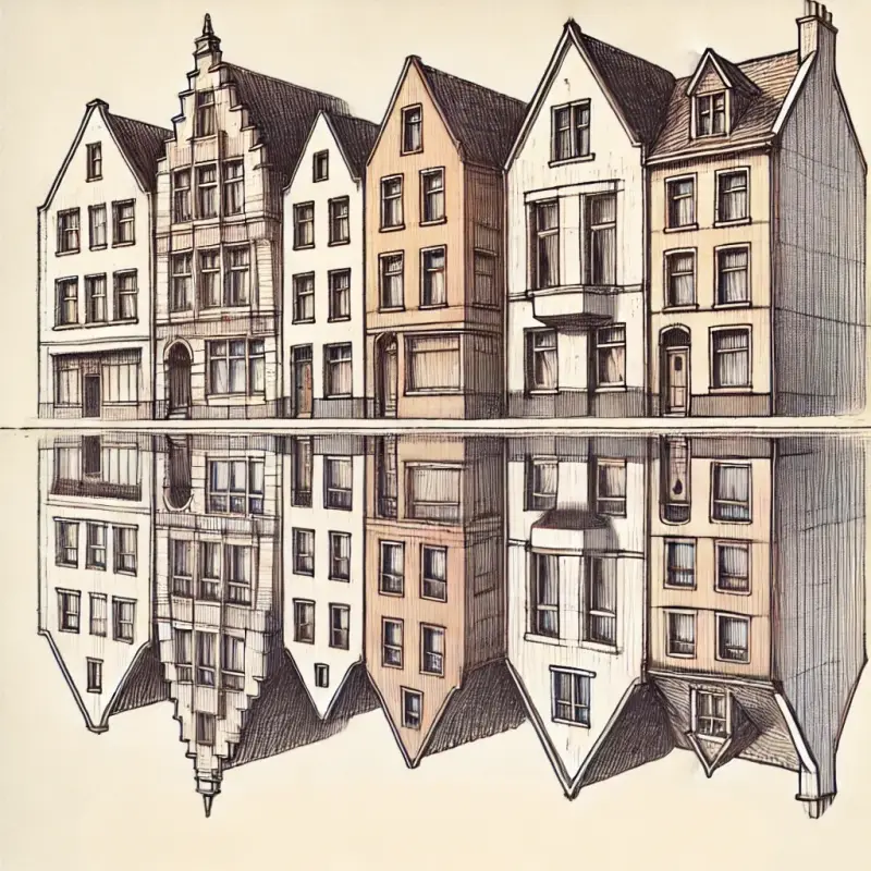 We zagen een afbeelding op de muur: een rij Amsterdamse huizen, gespiegeld. “So above, so below.” Het voelde als een teken dat ik niet dezelfde weg als mijn moeder hoef te volgen. Ik kies een nieuwe weg!